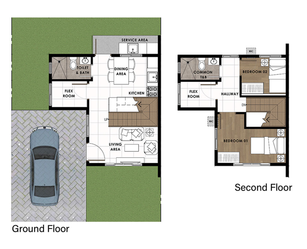 Features: Living area, Dining area, Kitchen, Service Area, 2 Bedrooms, 2 Flex Rooms, 2 Toilet & Bath, Storage, 1-car Car Park