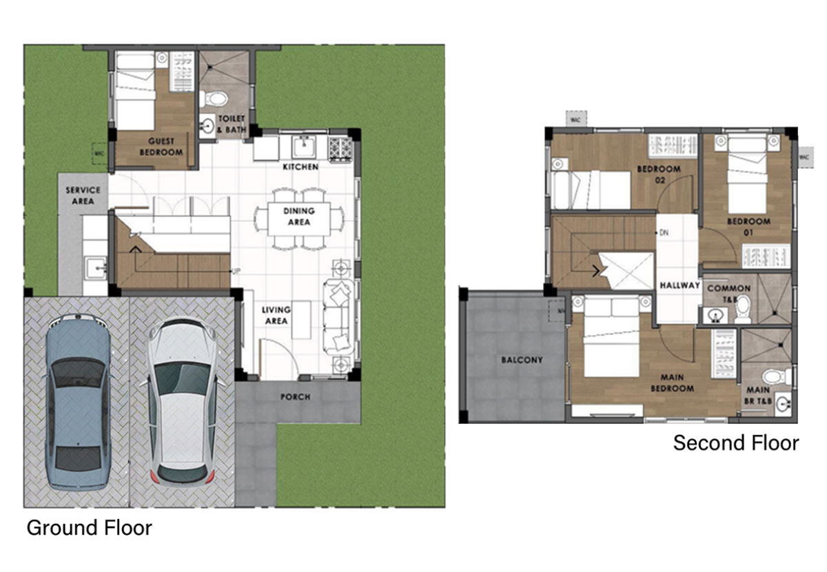 Features: Living Area, Dining Area, Kitchen, 3 Toilet & Bath, 4 Bedrooms (Guest Room, 2 Bedrooms, 1 Masters Bedroom en-suite Toilet & Bath), Balcony, Service Area, Porch, 2-car Car Park